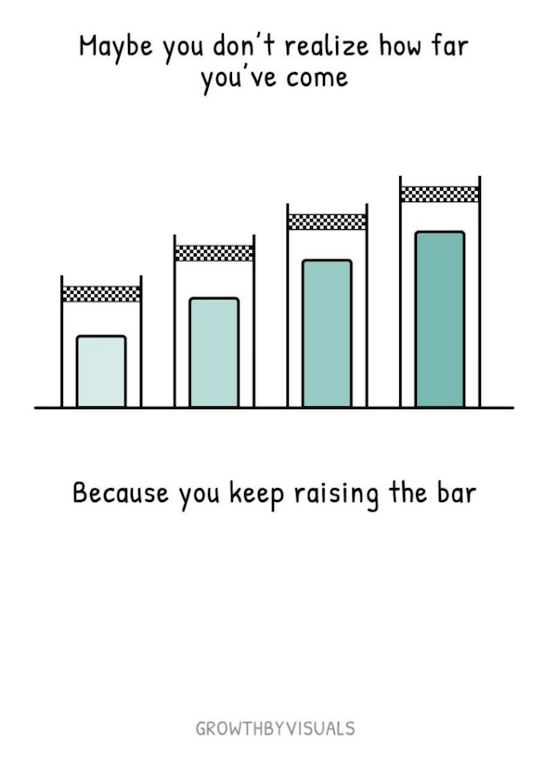 "Maybe you don't realize how far you've come," the image by Growth By Visuals says, "Because you keep raising the bar."